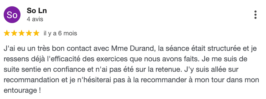 Les 15 premières minutes seront dédiées à fixer votre objectif, vous pourrez m’exprimer tout ce qui vous semblera important.