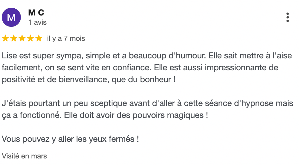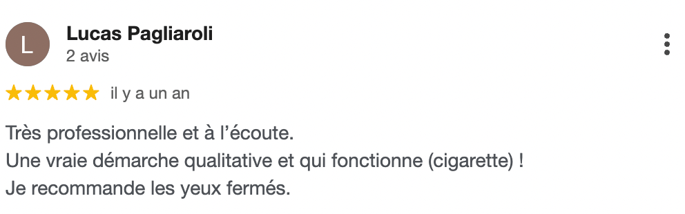 Je suis hypnothérapeute et spécialiste des comportements addictifs (tabac, troubles alimentaires, alcool, stress ingérable…) depuis 2021.